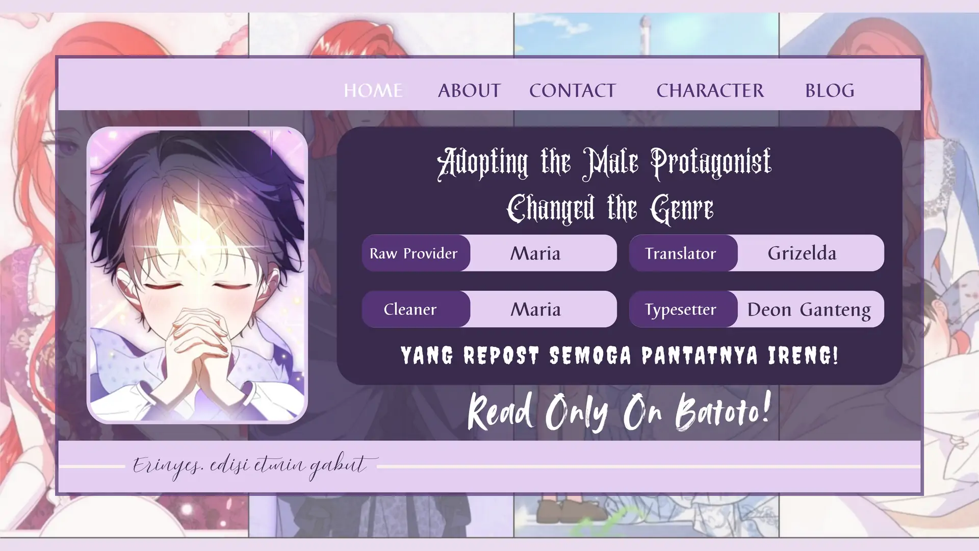 Read the latest manga Adopting the Male Protagonist Changed the Genre ch3 at omicaso . Manga Adopting the Male Protagonist Changed the Genre is always updated at omicaso . Dont forget to read the other manga updates. A list of manga collections omicaso is in the Manga List menu.