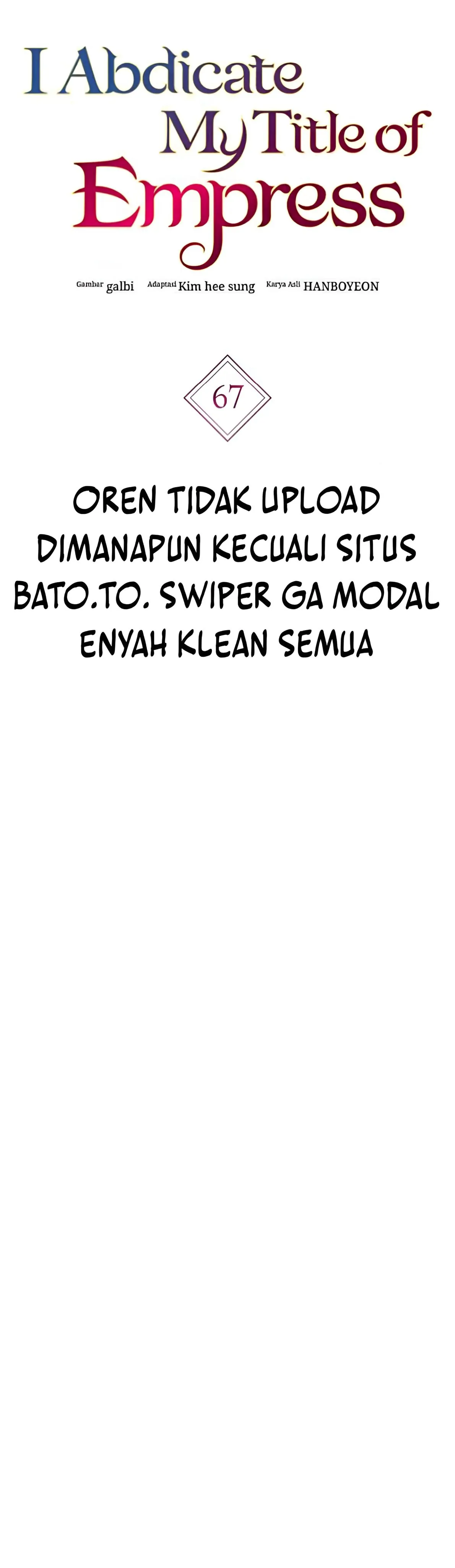 Read the latest manga I Abdicate My Title of Empress ch67 at omicaso . Manga I Abdicate My Title of Empress is always updated at omicaso . Dont forget to read the other manga updates. A list of manga collections omicaso is in the Manga List menu.